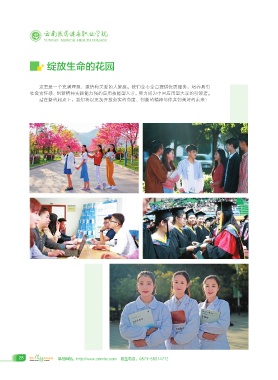 绽放生命的花园 这里是一个充满理想、激情和关爱的大家庭。我们全心全意提供优质服务,培养具有 社会责任感、创新精神实践能力强的应用技能型人才,努力成为中国应用型大学的引领者。 站在新的起点上,我们将以更加开放务实的态度、创新的精神与你共创美好的未来! 28 ͧ В䔶᠖ 学校网站:http://www.ynmhc.com 招生电话:0871-68314772 #&$"64& 0' 53645 40 $)004&